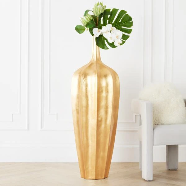 Inspired by the unparalleled brilliance of metallic gold, Z Gallerie has created our exclusive Accolade Vase to make a striking impression in a room. The simple lines of a classic fluted vase are accentuated by the substantial scale, measuring 16.25 inches diameter by 48.75 inches tall, while the fluted surface makes the most of a rich, lustrous gold foil finish. The vase is molded from lightweight materials to make it practical and portable, and creates an exceptional focal point when placed either on the floor or on a large table or shelf.