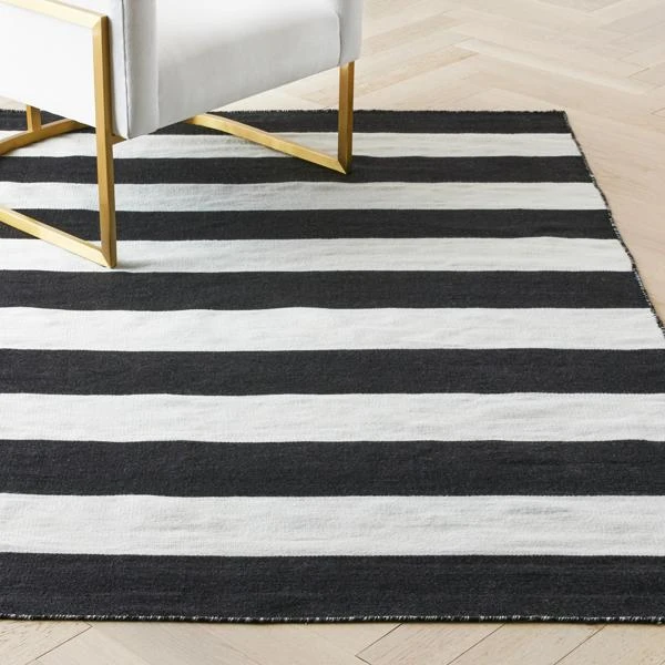 Relaxed meets sophisticated. Bold stripes in classic color combos reflect all the nautical vibes. Hand-woven using eco-friendly PET yarns, this sustainable-minded collection is suitable for high-traffic areas, both indoors and outside.