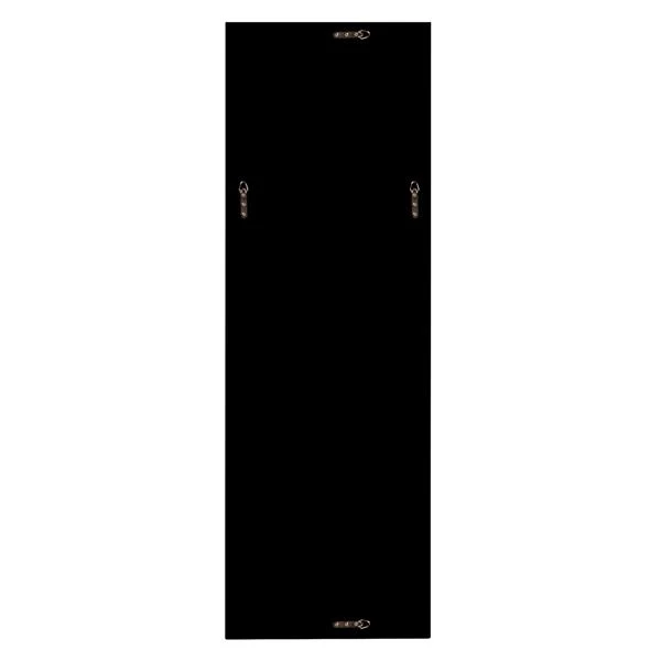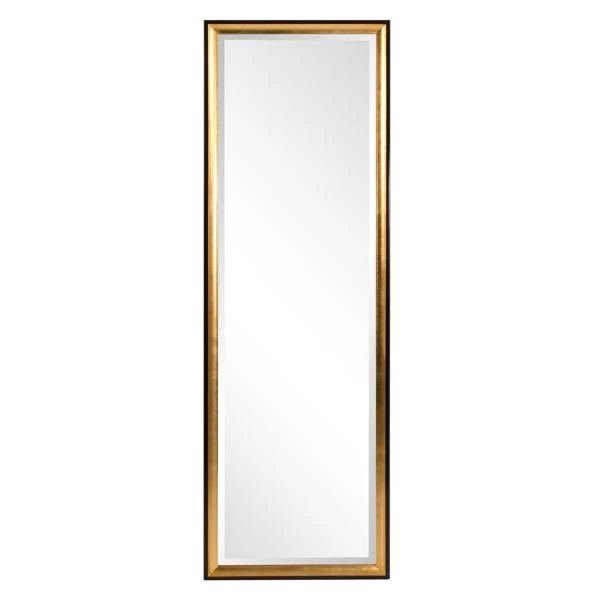Perfect for adding drama to your space, this floor mirror features elegant beveled edges and a glossy black frame trimmed in gold leaf. D-rings are affixed to the back of the mirror so it is ready to hang in either a horizontal or vertical orientation.