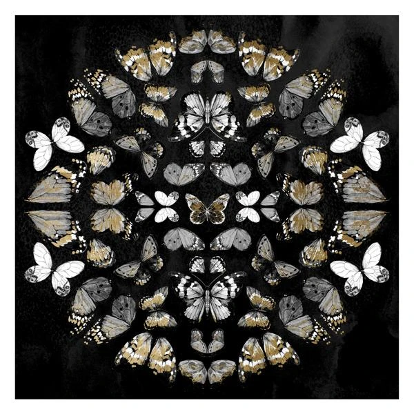Printed on canvas, this work pops on any wall with its kaleidoscope of butterflies and black background. Unframed.