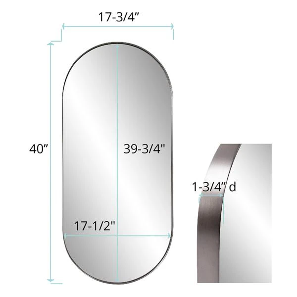 The Capsule Wall Mirror, features curved lines and on trend finishes. The brushed silver rounded frame of this mirror compliments some of todays modern design trends.