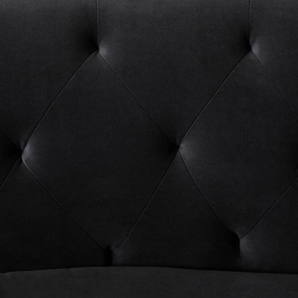 With elegantly curved kiln-dried hardwood frames, low, diamond-tufted backs, and generous padding, the pieces in our Circa Collection envelop you in comfort and style from all angles. Shown in Bella Velvet Black.