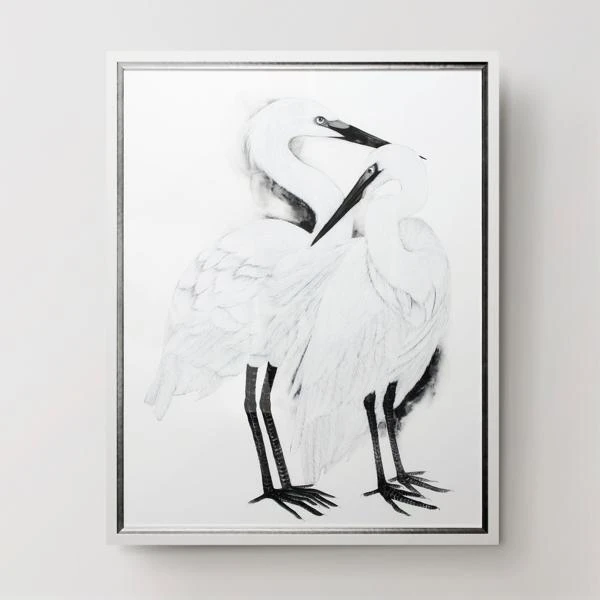 Rendered in a high-contrast palette, this beautifully composed work from artist Helen Parker is printed on archival paper and comes beautifully framed in silver-and-white molding.