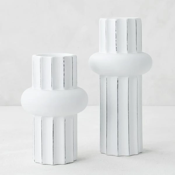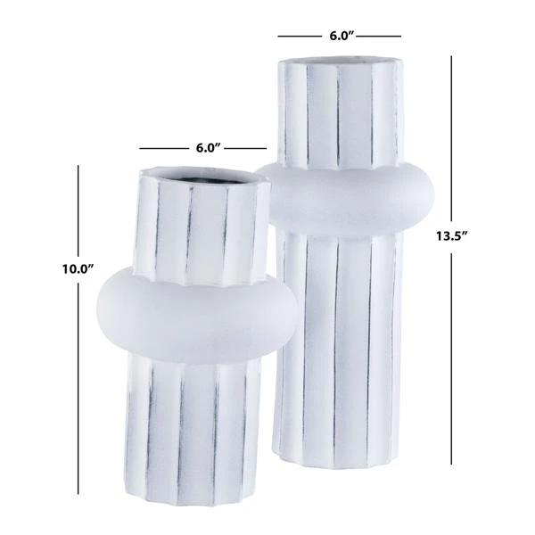 Elevate your tabletop with the modern charm and elegance of our Crete vase set. A rounded ridge adds character to our sleek and stylish vase. Both stately and dramatic, it adorns a rich fluted detail to add a dose of visual interest to your tabletop. The vase showcases a versatile antique white finish to add height and dimension to your fresh or faux botanicals. It can feature as a modern and distinctive piece for your entryway, living room, or bedroom decor.