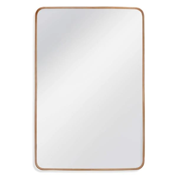 Our Ellis Mirror features a rectangular mirror with oval edges in a thin antique brass frame. The hand crafted details produced by a skilled artist lends itself to a unique technique and will vary slightly.