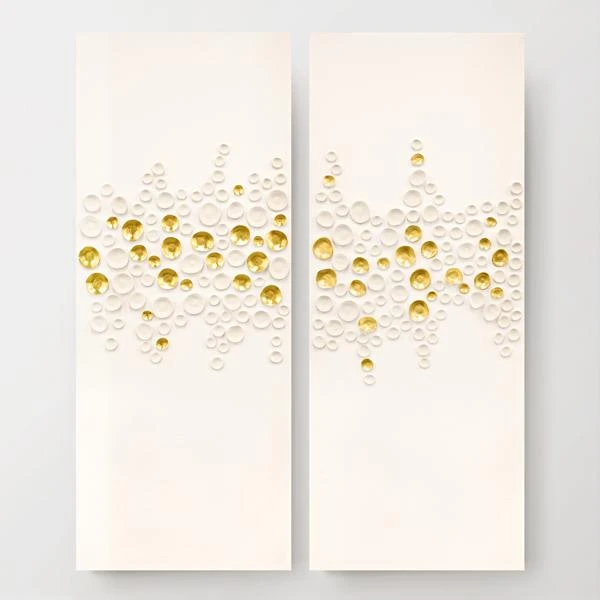 Savannah Yanni’s Falling Stars Series provides a touch of razzle dazzle to any space. These abstracts on canvas evoke visions of bubbling champagne. Custom creations, each is 100% hand painted and made in the USA. 1 of 4 in series.