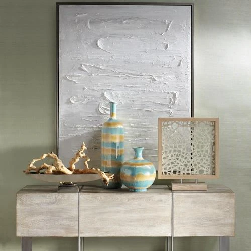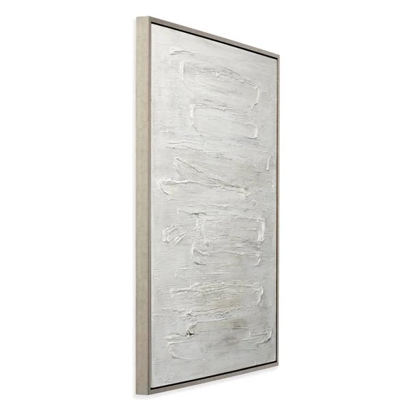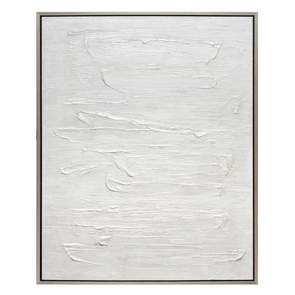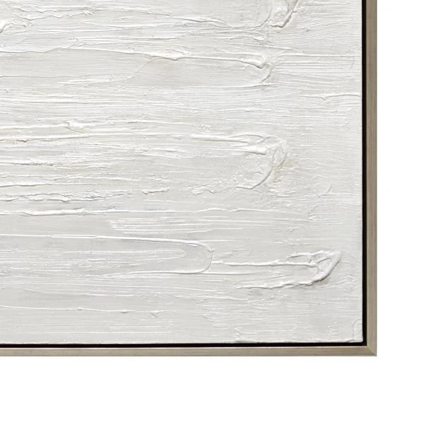 This hand-painted piece is something special! Bold brushstrokes in bright white add an incredible element of texture to this original painting. Rendered on canvas, this museum-quality piece is displayed in a champagne-silver floater frame.