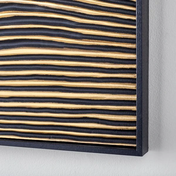 Looking for a way to bring the outdoors into your decor style? Adorn your walls with natural elements for a more rustic vibe. Illusions I is a carved wood panel with hand-applied gold paint accents. Set in a low-profile wood frame, this piece is a standout that will set the tone for your space when paired with the second in the series.