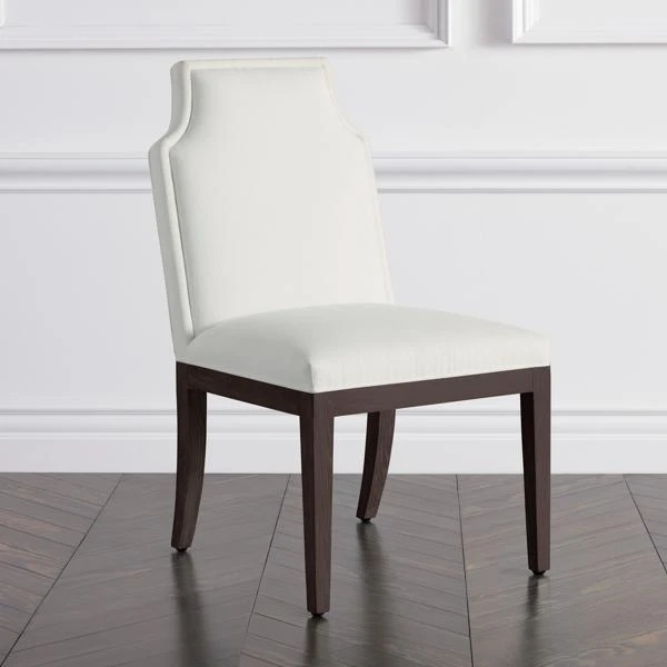 The notched back adds a chic, unexpected element to our clean-lined Jasmine chair, while the amply padded seat cushion provides plenty of comfort. Shown in Maxwell Linen Alpaca.