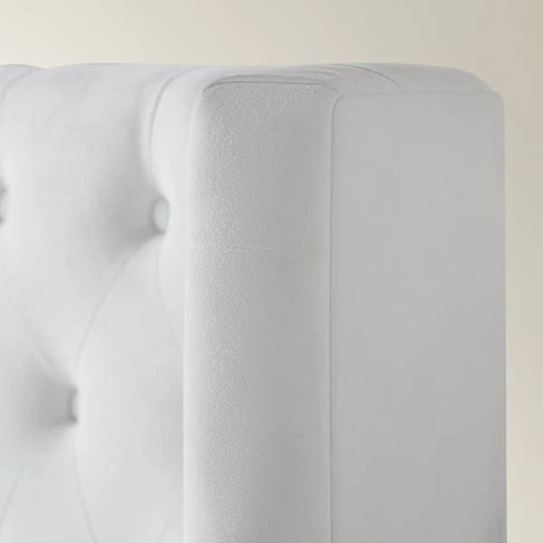 Inspired by designs found in the chicest Parisian hotels, our Jen Collection makes a glamorous, refined statement in the bedroom. Framed in kiln-dried hardwood, each features a gently curved wingback-style headboard and neatly tailored upholstery with hand-applied button tufts in a lavish diamond pattern. Shown in Bella Velvet White.