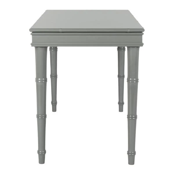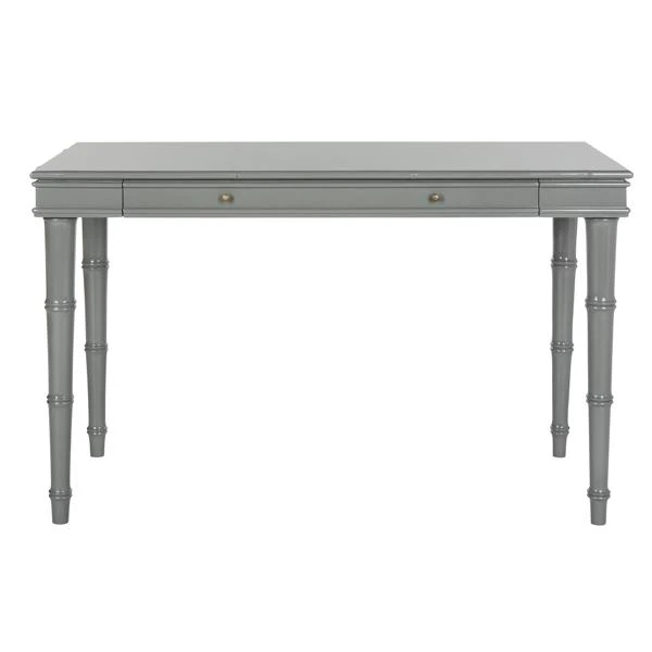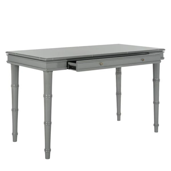 Carved with bamboo-like detailing and finished in white, this sleek desk will add Chinese Chippendale charm to any workspace. A drawer with brass hardware provides ample space for storage.