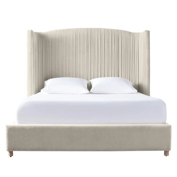 Who knew a bed could be a bombshell beauty comparable to Marilyn Monroe or Sophia Loren? Boasting an elegantly curved, wingback silhouette and hand-pleated upholstery, our handcrafted Larissa bed adds dramatic height and glamorous style to the bedroom, while its kiln-dried hardwood frame offers long-lasting support. Shown in Kenley Chenille Moondust.