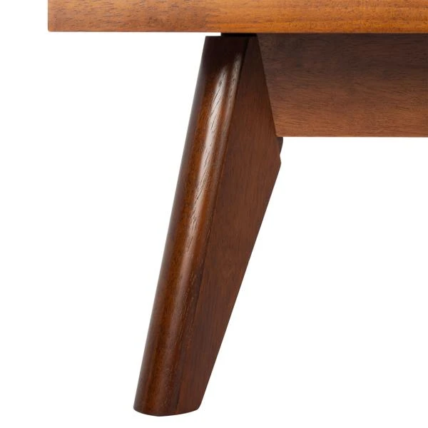 Overflowing with Mid Century charisma, this Lawrence Bed revitalizes retro chic charm for todayâs contemporary bedrooms. A smooth walnut finished frame, crisp angles, and splayed legs are perfect for elevating the aesthetic of any boudoir, making Lawrence a favorite of fashion forward designers. Sized for a standard queen bed.