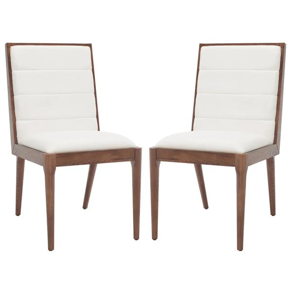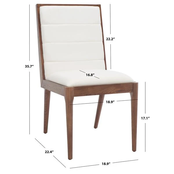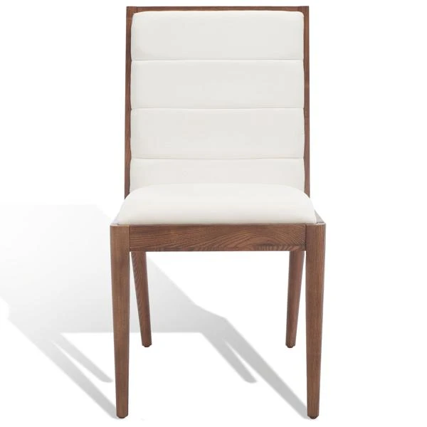 Embrace the sleek style and comfort of the Leora dining chair. With a modern flair, our stool features a clean and streamlined profile. Its generously cushioned back and seat are finished off with elegant tufting detail. Upholstered in white linen,it strikes the perfect contrast with its walnut finish wooden tapered legs. Our comfy and versatile dining chair allows you to sit and relax long after the meal is over.