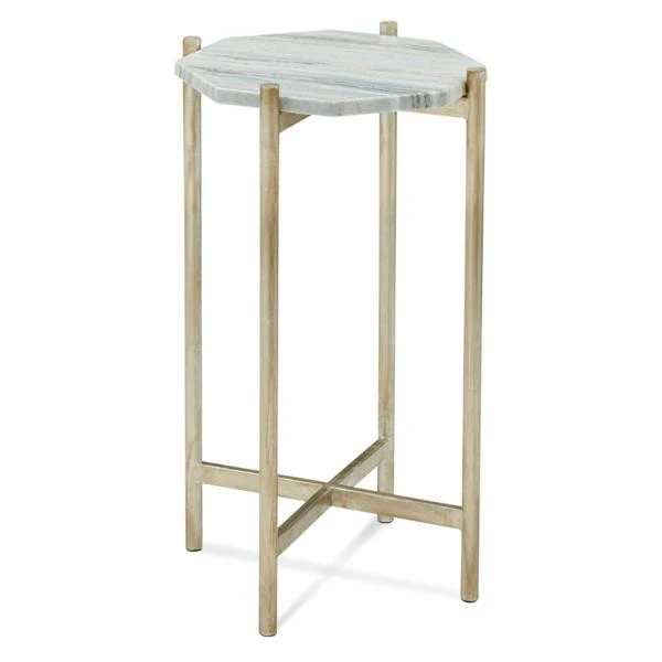 The Lyra Accent Table is the perfect modern accent table for the home. The table top is a grey marble that rests on silver leaf finish metal base.