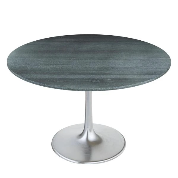 The Madra Dining Table 48″ has a raw marble top with a steel base. This table looks great in any modern glam, or deco dining area.
