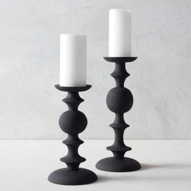 Designed with a shapely silhouette and textured, matte black finish, our Matias pillar holders make a stunning addition to any decor. Holds a 3.5â diameter pillar candle, not included.