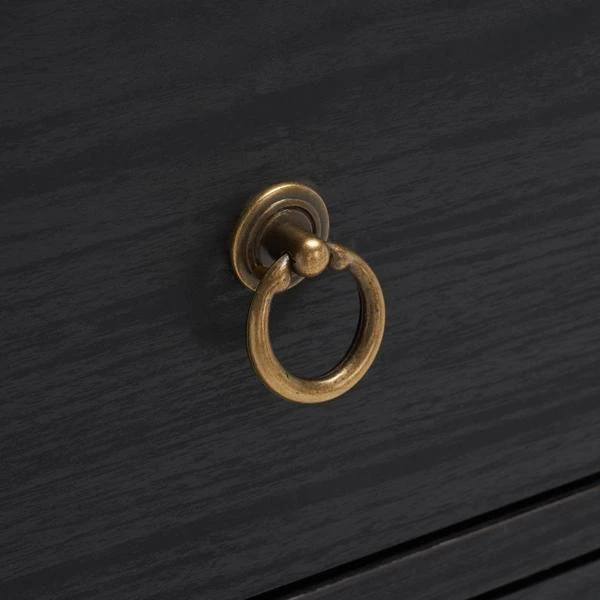Embrace a classy, elegant, and versatile addition to your bedside with the Mylo nightstand. Thoughtfully streamlined, the crisp and clean lines of our nightstand boast timeless aesthetics. It is gracefully perched and adorns a rich black veneer to enliven your bedroom. Being inspired by the effortless beauty of vintage style, our nightstand is finished off with ring pulls and gold hardware on the edges. An elegant and timeless addition, the nightstand features two drawers to store and organize all your essentials.
