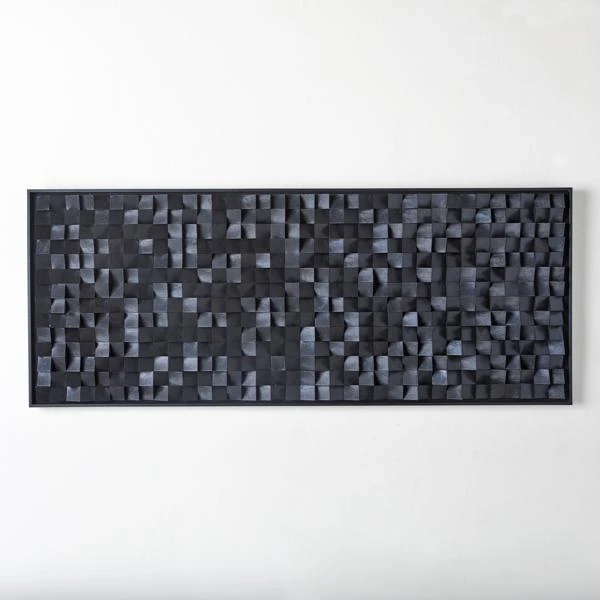 Create a space for wall decor that speaks to you. Nightfall is a conversation starter for sure. This abstract arrangement of cut black blocks is set in a low-profile black frame and will add visual interest to any wall. Â
