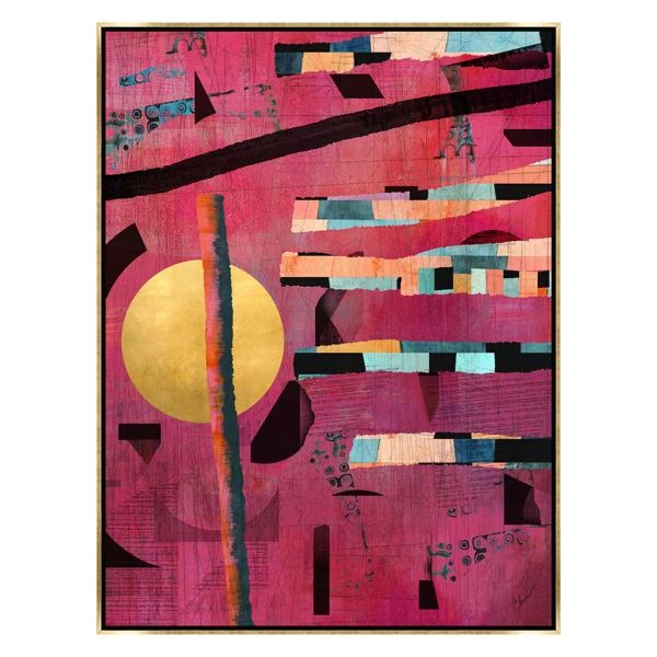 Printed on canvas with hand-applied impasto gold embellishments and set in a gold frame, this striking work from Nikki Chu lends a modern mood and vibrant color to the wall.