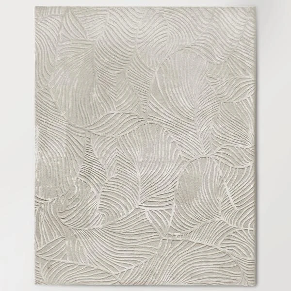 Tiptoe through the texture! Our Palm Rug adds visual interest as well as simple sophistication to any space. Rendered in a neutral ivory palette, this rug shows off a dynamic palm-leaf design with a high-low pile that adds texture and aesthetic appeal to your room.