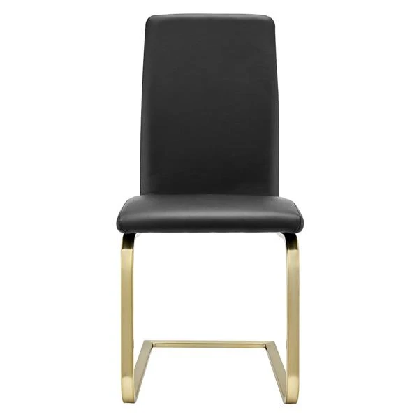 Clean and contemporary, these stylish dining chairs flaunt brushed gold-finished steel frames and beautifully contoured, foam-filled seats covered in smooth leatherette.