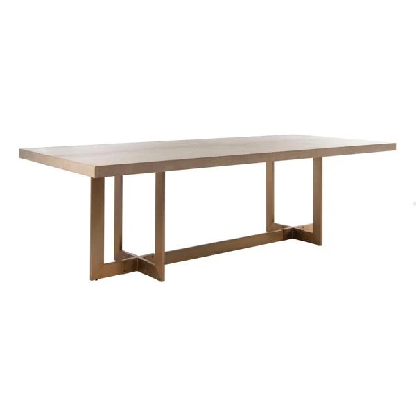 A solid design foundation for the contemporary dining room, this substantial dining table embraces form and function. Romy crafted with a warm neutral grey oak veneer, its brass finish highlights the bold angles and clean lines of its geometric base.