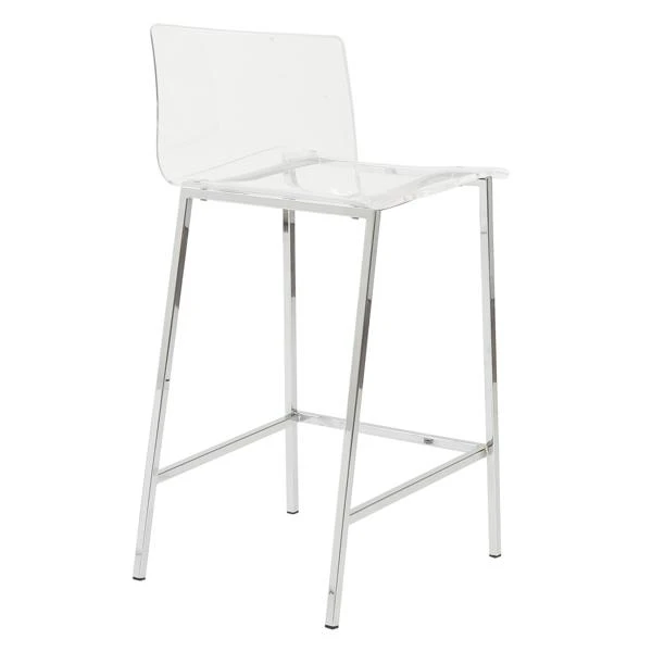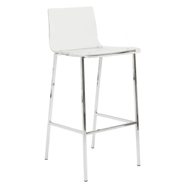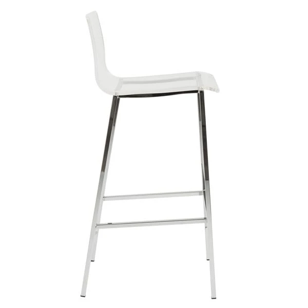 Sleek and modern, this pair of barstools flaunt beautifully contoured clear acrylic seats atop clean-lined steel frames finished in brushed silver.