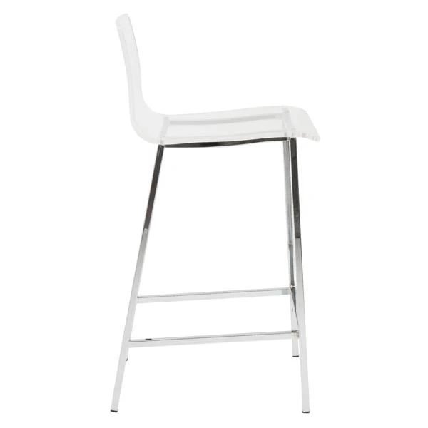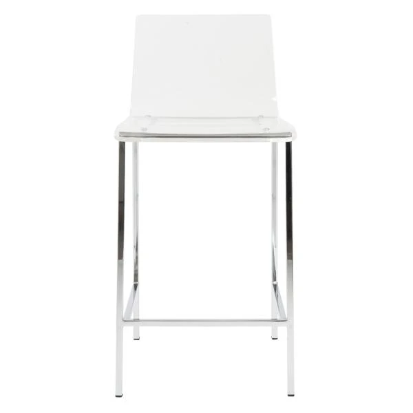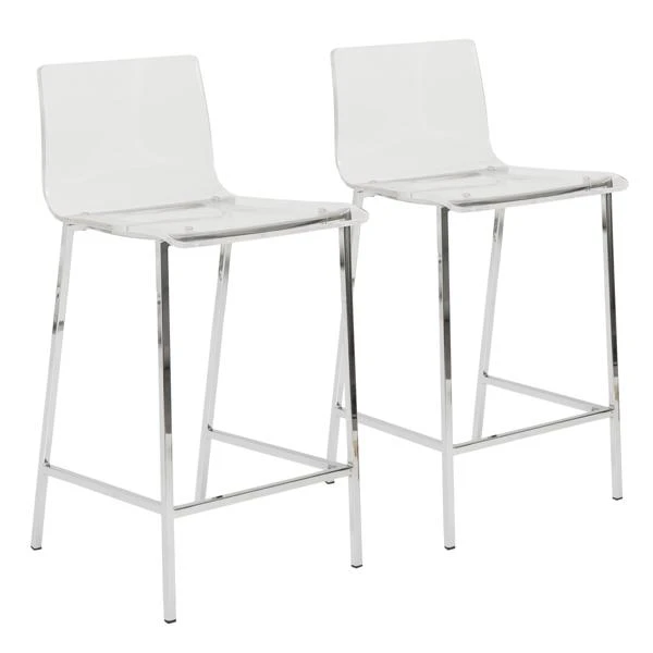 Sleek and modern, this pair of counter stools flaunt beautifully contoured clear acrylic seats atop clean-lined steel frames finished in polished chrome.