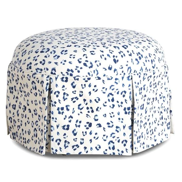 Framed in kiln-dried hardwood, this ottoman adds a feminine, tailored feel to any space with its blue-and-white cheetah print and kick-pleat skirt. A foam-and-fiber-filled seat cushion ensures long-lasting comfort.