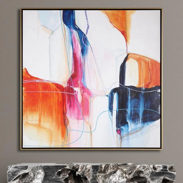 This impressive abstraction from artist Kelly OāNeal adds a modern note and hint of color to your wall. Printed on canvas with an image brush gel finish for added texture, this piece is displayed in a gold floater frame.Ā