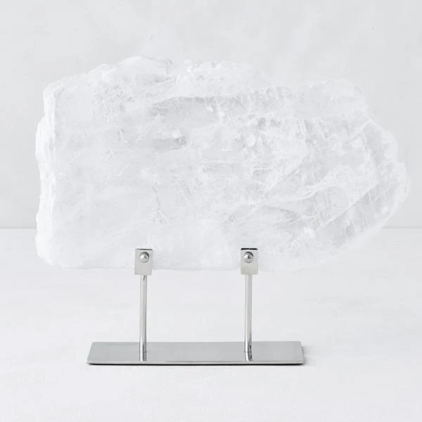 Named after Selene, the Greek goddess of the moon, selenite is a crystalline mineral embraced for its luminous appearance. It’s also coveted for the belief in its healing properties and cleansing energy. Mounted on a stainless steel stand, our radiant Selenite Slab is a stand alone piece that will start conversations.