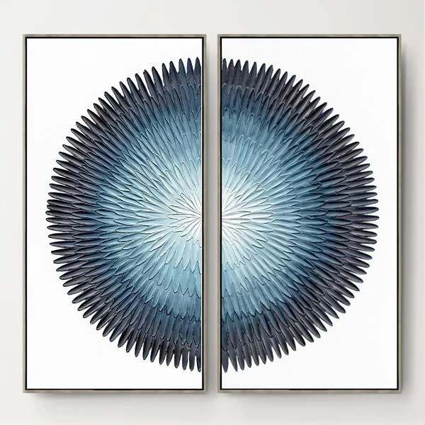 - 100% hand painted canvas set in a silver floater frame.