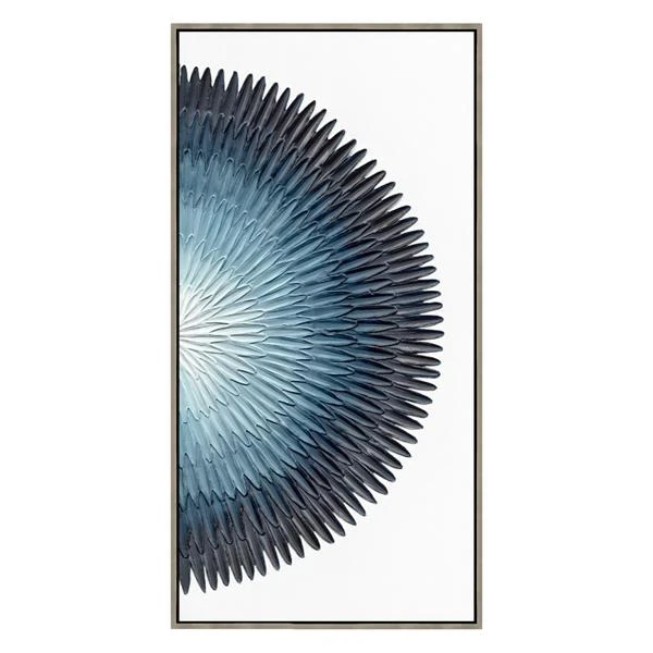 Forget your troubles, come on get happy. This hand-painted canvas makes the blues beautiful. Set in a silver floater frame, it can be hung vertically or horizontally. Complete the look with Troubles I.Â