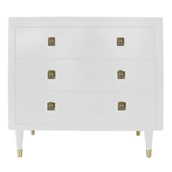 With its streamlined silhouette, gleaming details, and capped cone legs, the Uptown Dresser from Newport Cottages lends an air of classic Deco elegance to any room, while its squared Lucite-topped hardware adds a fresh, modern touch. Four spacious drawers on soft-closing glides offer ample space for storage. And because it’s handcrafted from solid hardwoods with mortise-and-tenon joinery, this piece ensures years of lasting style. Made in the USA.