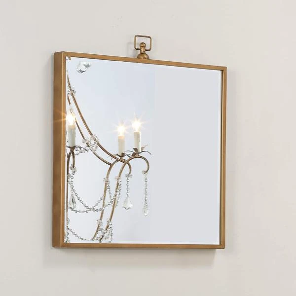 A modern take on an antique-inspired silhouette, this mirror will bring charm to a variety of dĂŠcor styles. Featuring glass surrounded by a slim metal frame hand-finished in antique brass. Mounted above a vanity, sideboard or dresser, its squared shape will open-up your view and make your space feel bigger.Â