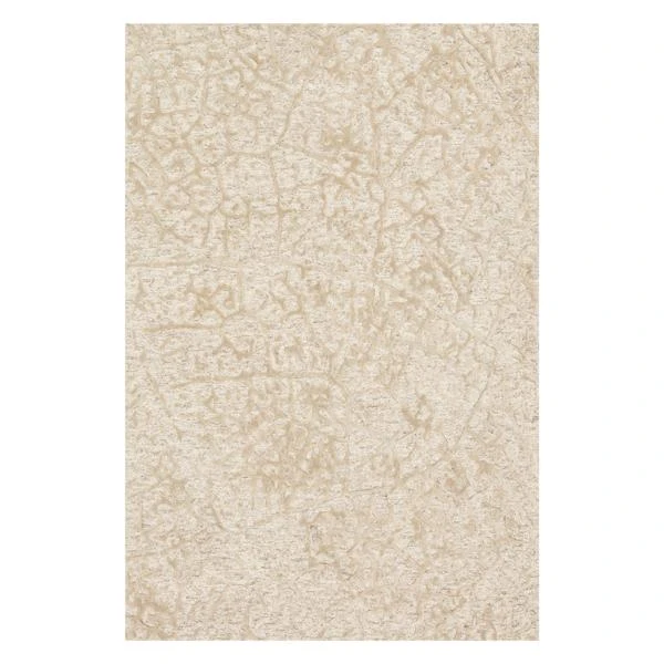 This striking rug contains high and low effects that are hand tufted with viscose and wool for a silky shine inspired by nature’s most textured landscapes.