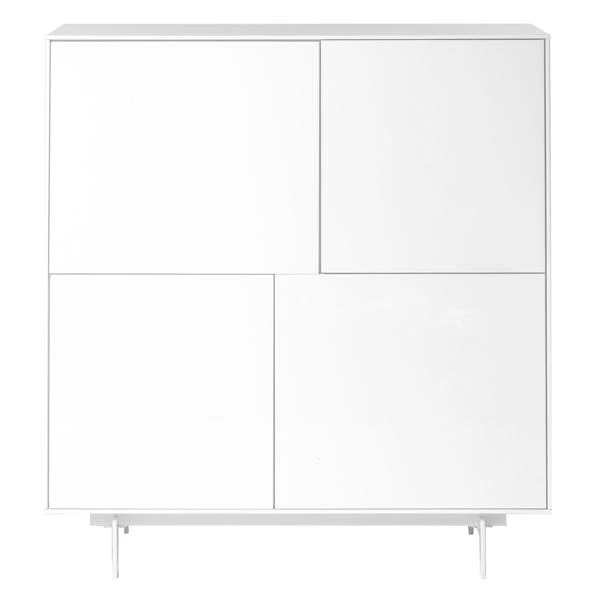 The Vivienne Cabinet combines crisp, modern style with classic design. This cabinet features four doors, enclosing seemingly endless amounts of storage space. The outer frame is made of white lacquered MDF and the metal legs are white powder-coated metal.