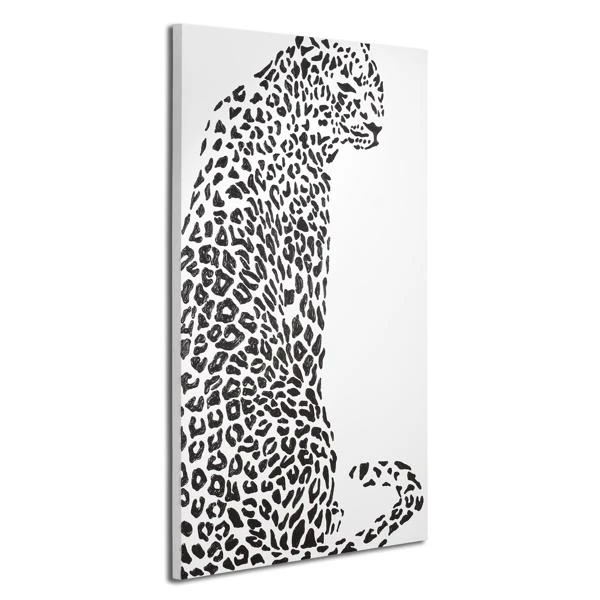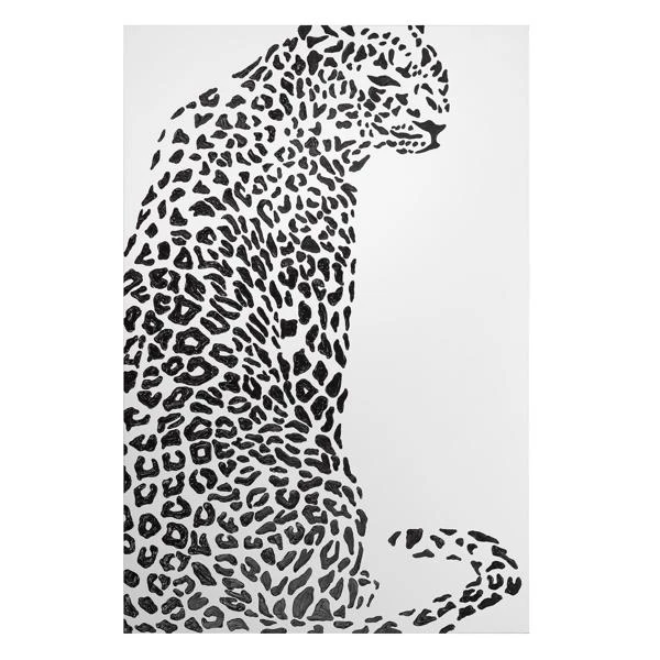 Rendered with thick, glossy black paint, the spots of the cheetah in this original work from artist Beverly Fuller pop against a white background. Painted on canvas, this piece is unframed.